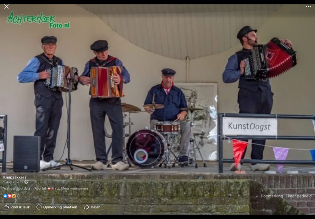 Sinds wij in 2020 zijn gestart, zijn de Knapzakkers een niet weg te denken onderdeel geworden van braderieën, markten en andere gezellige plekken. In ons programma wordt muziek afgewisseld met vermakelijke intermezzo’s zoals dialect gedichten, sketches en anekdotes over de vele stommiteiten die ons gegund waren.